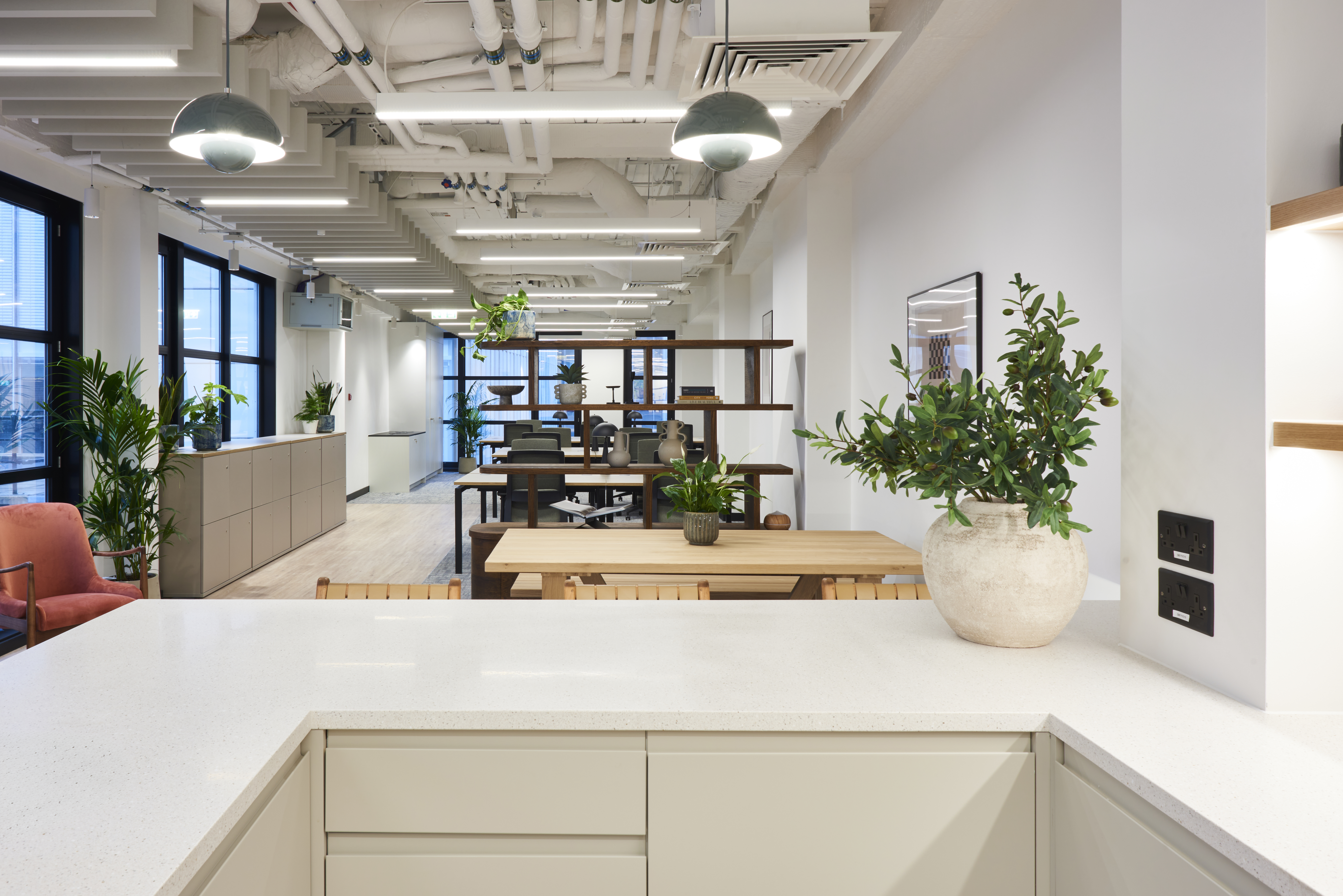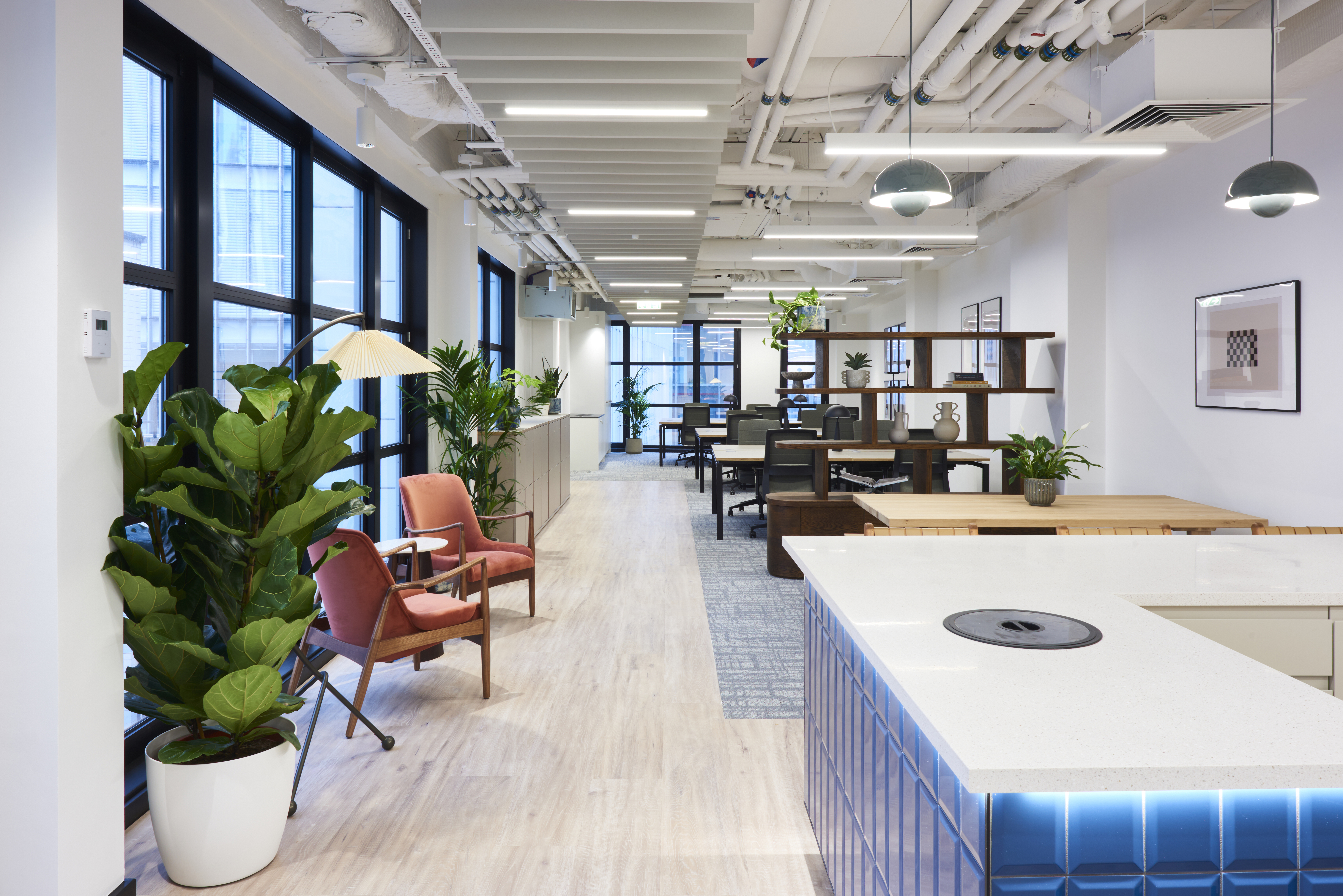 design scheme that aimed to make the office environment feel more inviting and less institutional.